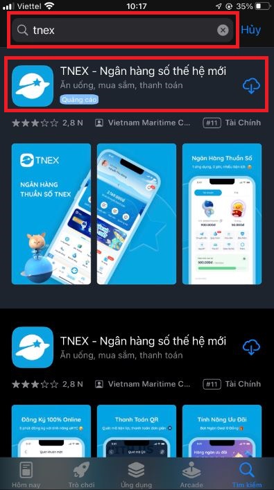 Bước 3: Kết quả tìm kiếm hiện ra, lựa chọn App Tnex và nhấn vào nút Cài Đặt.