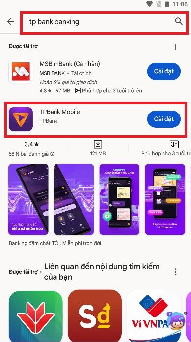 Bước 2: Ở mục tìm kiếm, sử dụng từ khóa “TP Bank” để tìm và tải App.