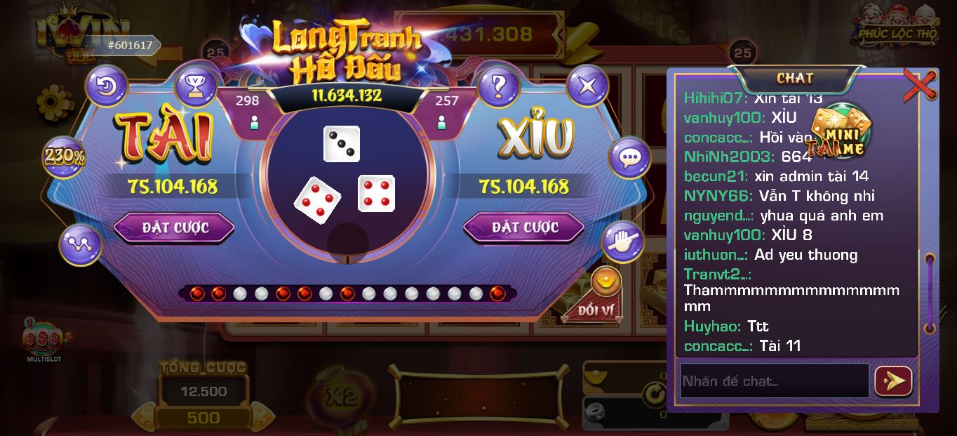 Tài Xỉu thuộc top 1 trò chơi thu hút lượt tham gia đông đảo nhất tại iWin Club. Với thể lệ trò chơi đơn giản, 1 là Tài 2 là Xỉu, Tài Xỉu có tỷ lệ ăn thưởng lên đến 50%. Cho nên chỉ cần 40.000 đồng tiền thưởng bạn có thể chơi Tài Xỉu để gia tăng số vốn cược tại iWin Club.