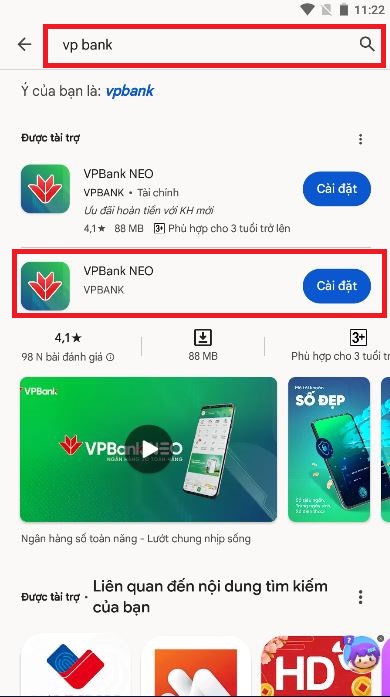 Bước 2: Ở trên thanh tìm kiếm, nhập từ khóa “VP Bank” để lấy app.