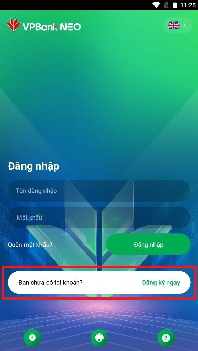 Bước 5: Mở App VP Bank, bạn sẽ thấy giao diện mở đầu như hình. Nhấn vào Đăng Ký tài khoản mới.