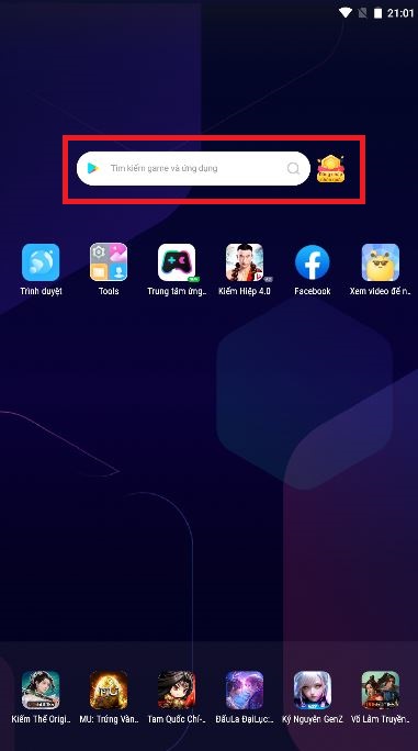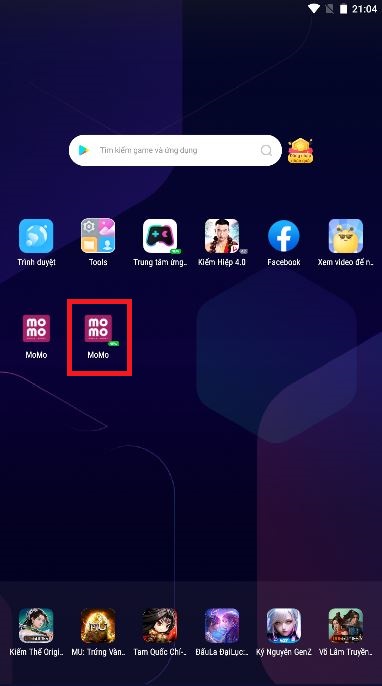 Bước 2: Nhấn chọn vào mục tìm kiếm và nhập từ khóa “Momo”.